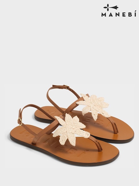 Manebi Leather Ankle Strap Tan Brown Sandals