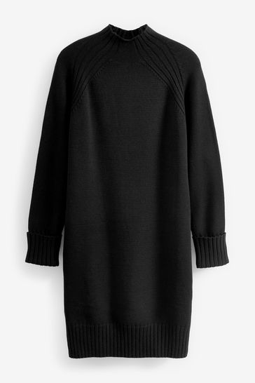 Rib Knit High Neck Midi Jumper Dress