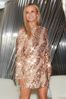 Lipsy Long Sleeve Round Neck Sequin Belted Shift Dress