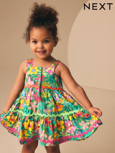Green Tropical Ric Rac Summer Dress (3mths-8yrs)