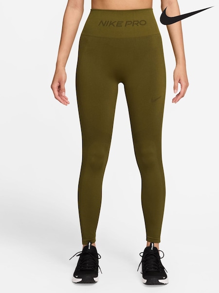 Nike Olive Flak Green Pro Seamless High Waisted 7/8ths Leggings